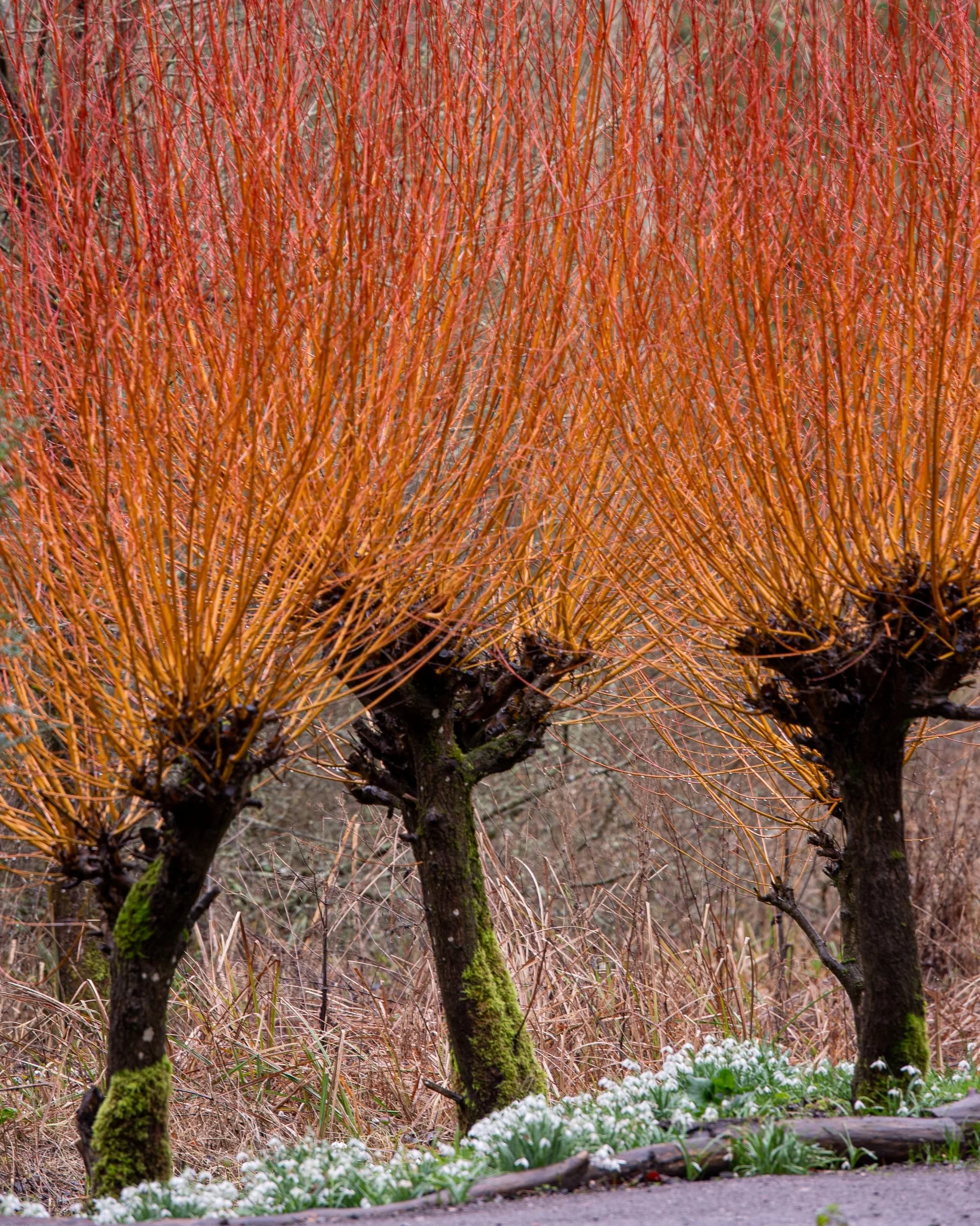 Although snowdrops are the main draw there were other good winter flowers here, lots of hellebores, but crocuses were still a bit shy in the rain. There were some lovely shrubs, scented daphnes, and some colourful willow stems. The catkins of this willow, Salix gracilistyla Mount Aso were pretty stunning.